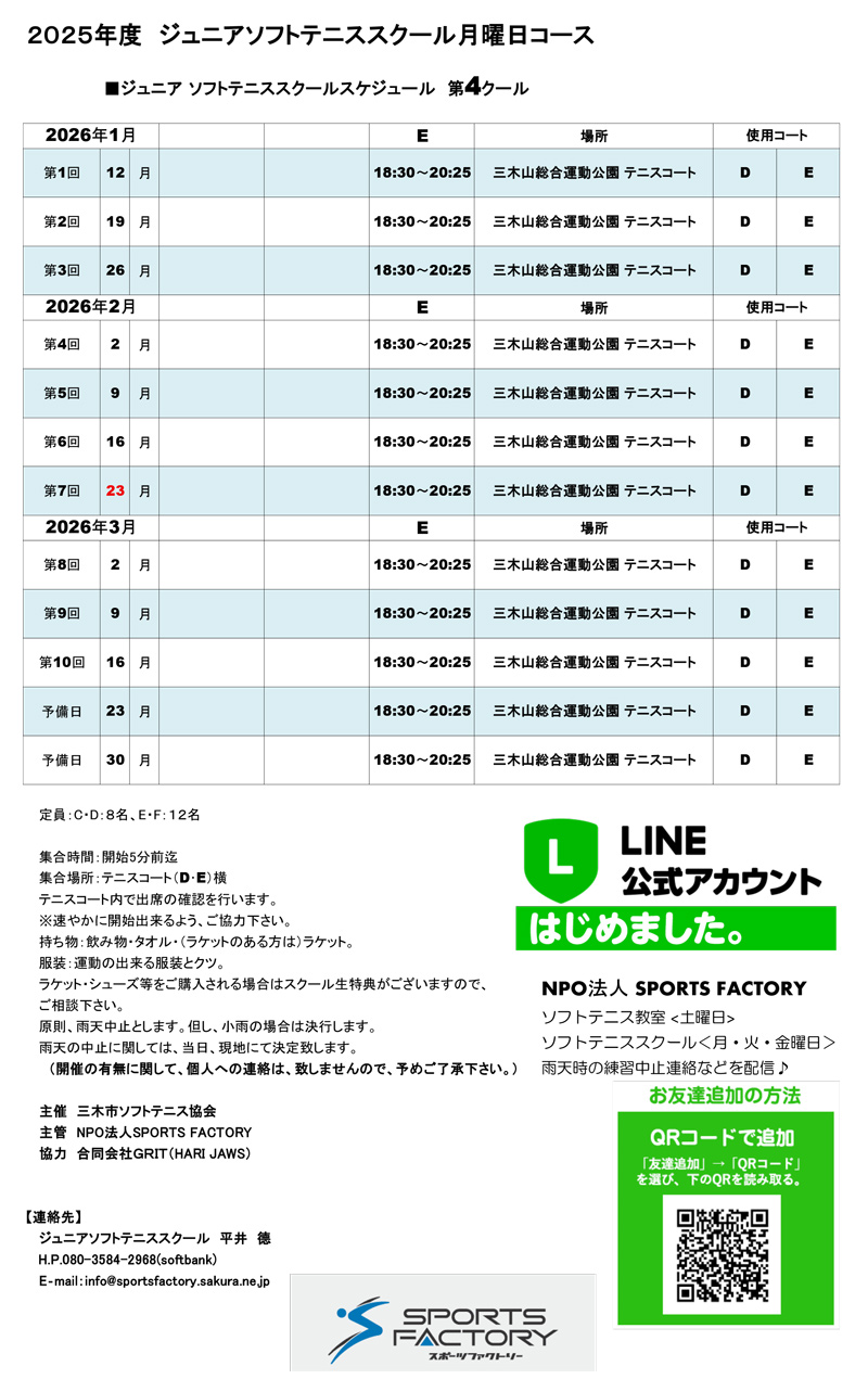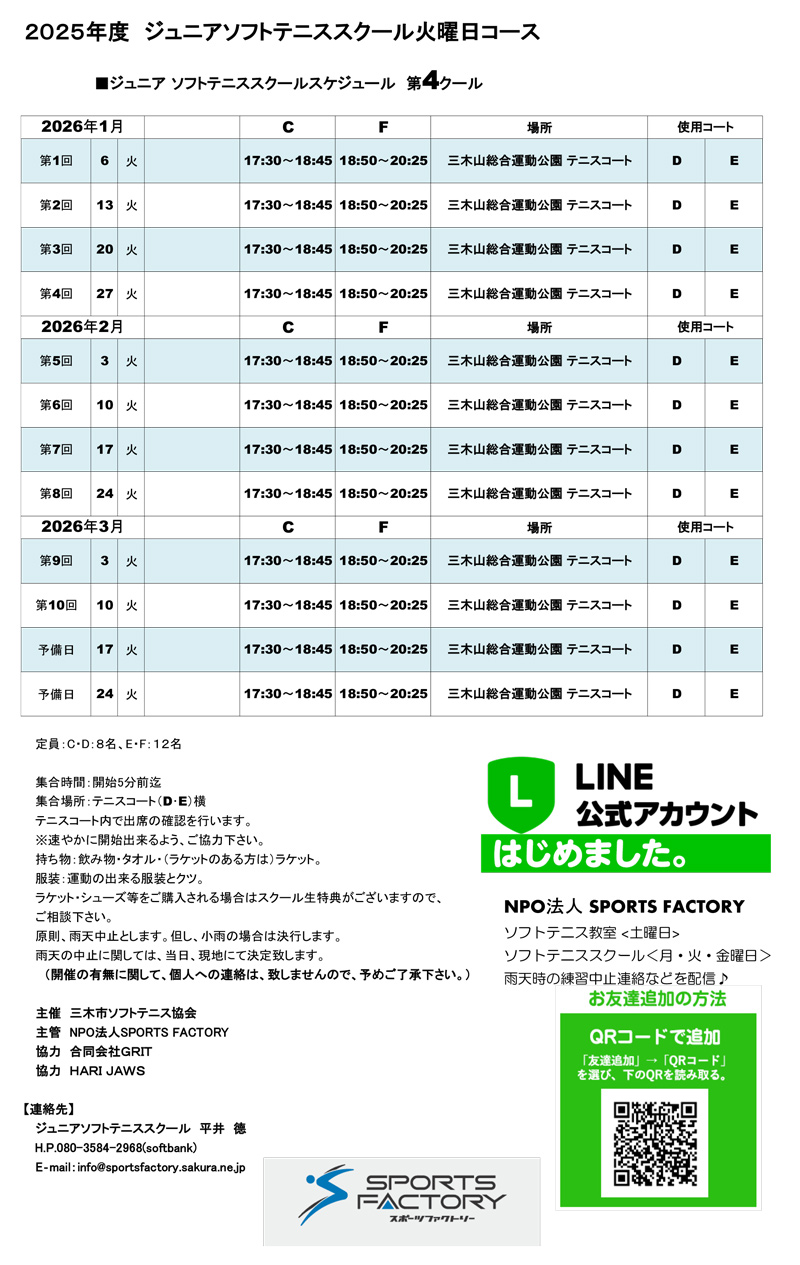 三木山ジュニアソフトテニススクールでは、スクールスタッフ&アルバイトを募集しております。